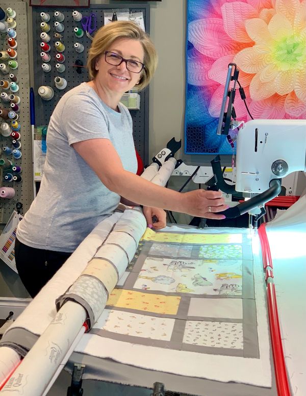 I have been piecing for 30 years and quilting my own tops for about 23 years. I have an English Degree as well as an After Degree in Secondary Education from The University of Alberta. My love of quilting inspired me to take a History of Quilting Masters Degree class from the University of Nebraska-Lincoln, NE. Over the years I have taken several Handiquilter specific classes in Salt Lake city, Kansas, and classes close to home or online. I have raised three children, worked in a dental office, been a teacher, and owned a children's clothing store. I am currently most excited about my venture as a Longarm Quilter! I am like a squirrel - easily distracted by a new style of quilting. I love just about every style and method of quilting. I am also a bit obsessed with digital patterns! Note: My home is smoke and pet free.